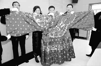 18條五彩龍、540只仙鶴、540個靈芝、1045個金色正楷壽字……南京云錦研究所歷時3年,完全按照明定陵出土原件復制成功的“織錦金壽字龍云肩通袖龍襕妝花緞襯褶袍”,日前正式移交給定陵博物館(見圖)。復制成功的龍袍通體為絳紅色,上面滿是彩色圖案紋飾,顯得非常華貴精美。
