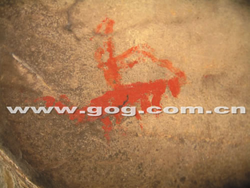 據(jù)介紹,去年12月16日,貴州省考古所所長(zhǎng)助理李飛、研究員楊洪在普定縣考古所所長(zhǎng)陳發(fā)武帶領(lǐng)下,到化處鎮(zhèn)考古時(shí),無(wú)意中在該鎮(zhèn)中學(xué)對(duì)面的空山腳下巖石上發(fā)現(xiàn)一些紅色印跡,經(jīng)仔細(xì)辨認(rèn)后,這些紅色印跡被確認(rèn)為巖畫。隨后,幾位考古專家又繼續(xù)往半山坡上尋找,共發(fā)現(xiàn)了10余幅巖畫。這些古巖畫中,許多畫清晰可辨,有栩栩如生的小狗,有耀武揚(yáng)威騎馬的將軍等等。