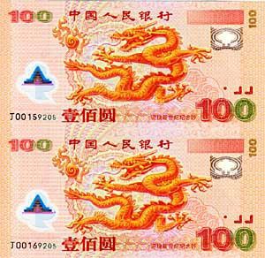 為了迎接新世紀(jì)的到來(lái),中國(guó)人民銀行于2000年發(fā)行了迎接新世紀(jì)千禧年雙龍紀(jì)念鈔連體鈔,裝幀冊(cè)的發(fā)行量為10萬(wàn)冊(cè),面值為200元。
