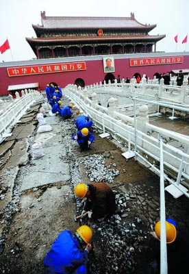 為迎接新中國成立60周年,天安門金水橋從昨日起開始修繕。天安門管委會昨日消息稱,此項工程預計在5月1日前完工。來自北京市文物局官網(wǎng)的招標公告顯示,工程財政撥款資金94.64萬元。