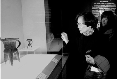 昨日,臺北客人來到上博,立即同上博方面進行了極其融洽的商談,由于相談甚歡,遲遲不能結束,原定的參觀時間不夠用了,所以上博方面只好請臺北客人進入地下的貴賓廳,從庫房里精選出館藏珍品進行展示。由于來訪的大多是臺灣的文物專家,因此客人們看得十分仔細,甚至帶著學者的眼光來探究。“周功鑫女士就是漆器方面的專家,我們也展示了漆器,周院長看得十分仔細。 ”上博接待人員透露,展示給臺北客人看的包括青銅器、瓷器、書畫等,共10多件重要藏品。