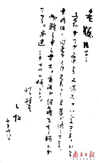 最令人關(guān)注的是,展覽中還展出了魯迅寫于1936年10月18日凌晨的絕筆信(復(fù)制品),這封信寫給好友內(nèi)山完造,讓內(nèi)山幫忙請(qǐng)醫(yī)生前來(lái)診治。信中用日文寫道:“老板幾下:沒(méi)想到半夜又喘起來(lái)。因此,十點(diǎn)鐘的約會(huì)去不成了,很抱歉。拜托你給須藤先生掛個(gè)電話,請(qǐng)他速來(lái)看一下。草草頓首L拜 十月十八日。”記者看到,信上字跡很難分辨,筆力不深、草草書寫,可以想見(jiàn)當(dāng)時(shí)魯迅身體已極度虛弱。寫完這封信的次日,魯迅先生就與世長(zhǎng)辭了。