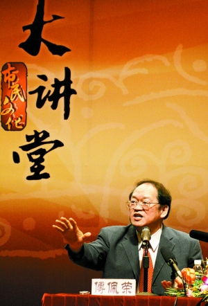 傅:有一個(gè)例子,一個(gè)人會游泳,也會打網(wǎng)球,但都不是很好,他有一天回家跟他太太說,他說我今天真得意。為什么呢?我贏過兩個(gè)奧運(yùn)冠軍。我跟奧運(yùn)的網(wǎng)球選手比賽游泳,贏了。跟奧運(yùn)的游泳選手比賽網(wǎng)球,我也贏了,所以我贏過兩個(gè)。他并沒有講錯(cuò)。這就是自我解嘲,人活在世界上,把自己放在與全世界前幾名競爭的位置上,壓力真的很大。如果有儒家跟道家的修養(yǎng)配合的話,我相信不但壓力可以減輕,甚至可以把這樣的競爭當(dāng)成一種樂趣,就是別人在那邊爭得很辛苦,你把它當(dāng)做人生一種自然而然的經(jīng)驗(yàn),而不要太過于在意。