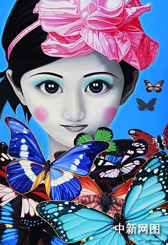 中新網上海六月五日電 (記者 孫璐)由上海藝術博覽會組委會、上海巴塞藝術中心等單位聯合主辦的“蝴蝶飄飄——江衡藝術作品展”,今天下午在上海美術館揭開帷幕。另類的美女造型,強烈的視覺沖擊,爭議的藝術評論,記者在今天開幕的這場畫展上看到的是中國青年藝術家對于現代藝術的深層次探索。
