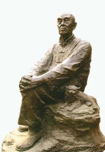 我已經(jīng)記不清是哪一年與季老有交往的了,反正幾十年了,在我的腦子里都是一連串的往事:有一年我?guī)е袼芗壹o峰到未名湖畔季老家里,告訴他這是青年雕塑家紀峰,來給你做一個像。季老只是微微點頭,仍舊與我說話。在旁邊的李玉潔老師卻心里犯嘀咕,這么年輕的人,能行嗎?這是她的心里話,沒有說出來。我與季老隨便說著,大約有半小時過去了,卻見到紀峰手里一個活生生的季老的頭像,季老說還沒有看到他塑呢,怎么就出來了,真像啊!這時李老師就說出了上面這段心里話。然后說想不到真能,像極了,比以前別人塑的都好。之后,季老一連要紀峰為他做了三個像,一個是與真人一樣大的坐在門外未名湖邊的像,一個是比真人還要大一點的站像,我為這個站像題了一首詩,刻在像后,詩云: