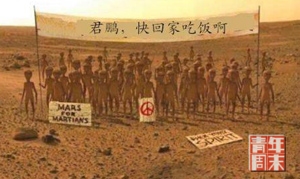 網(wǎng)友繼續(xù)為原本無(wú)意義的水帖“增加”意義,帶有“賈君鵬”字樣的PS圖片相繼誕生,有網(wǎng)友在易中天《百家講壇》的照片下方寫(xiě),“大家好,我是賈君鵬的班主任”,也有網(wǎng)友在一群外星人舉旗的照片中PS上“賈君鵬你媽媽喊你回家吃飯”的標(biāo)識(shí),或者讓這幾個(gè)字出現(xiàn)在《新聞聯(lián)播》的字幕中,賈君鵬成了無(wú)所不在的符號(hào),終極的指向是一場(chǎng)集體無(wú)意識(shí)的搞笑和樂(lè)子。