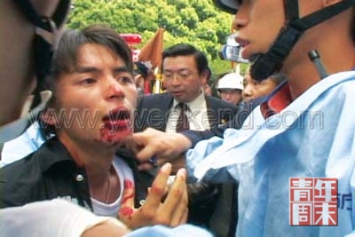 靖國神社內,眾人向神社行禮參拜,突然,一個學生模樣的年輕人沖到前面高呼“反對參拜靖國神社!”他很快被撲倒在地,雙方扭打在一起。終于有人竭力拉開了他們,又有一位老者上前,緊逼著他走了很遠,并不住呵斥:“滾回中國去!滾回中國去!”年輕人一言不發,但這長達幾分鐘的反復呵斥令這些中國觀眾有些難以忍受。一直用攝像機記錄這一過程的李纓當時也急切地想驗明這個年輕人的身份,于是,在旁邊所有人都把這個反對參拜靖國神社的年輕人當作中國人的時候,李纓小心翼翼地問了一句:“是中國人嗎?”“不,我是日本人!