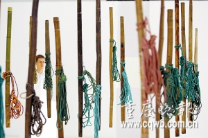 把自己當成雕塑一動不動、把自己掛在鐵桿上被灑水車噴水……昨日,重慶首屆中德青年裝置藝術作品展——“現實中的影像”在黃桷坪當代美術館正式開展。20多位中德青年藝術家帶來了20件稀奇古怪的作品,其中,用每根100元收購來的棒棒讓參觀者留下了深刻的印象。