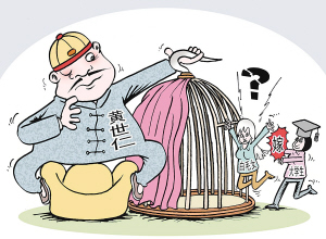 現(xiàn)場的大學(xué)生很“配合”,一位“90后”女生小謝說:“如果黃世仁生活在現(xiàn)代,家庭環(huán)境優(yōu)越,可能是個外表瀟灑、很風(fēng)雅的人。加上有錢,為什么不能嫁給他呢?即便是年紀(jì)大一點也不要緊。”還有一個大一女生表示,“如果我嫁給有錢人‘黃世仁’,可以拿他的錢捐給慈善事業(yè),幫助有需要的人。”