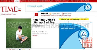 最新一期美國(guó)《時(shí)代》周刊亞洲版,聚焦中國(guó)文壇80后作家——韓寒。《時(shí)代》刊登的這篇文章的標(biāo)題把韓寒定義為“中國(guó)文壇的壞小子”。