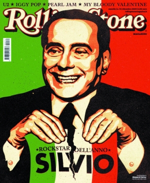 在這期《滾石》雜志(12月號)封面上赫然印著藝術化了的貝盧斯科尼微笑肖像,其背后是意大利國旗,手中則拿著撕裂的意大利國旗。《滾石》雜志意大利版編輯卡洛·安東內利(Carlo Antonelli)稱,這位73歲的媒體大亨是由雜志編輯們一致推選成為“年度搖滾之星”的,他說:“今年大家的意見都很一致,他有明顯的優勢,他的生活用‘搖滾’二字來形容都不夠。”