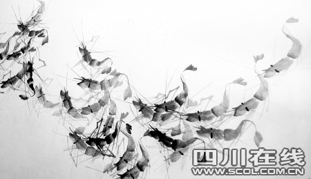 昨日下午,記者來到衛保貴生前的家中,一進門就看見一大幅衛老畫的蝦圖,畫中的蝦通明剔透,跳脫自如,神韻畢現。