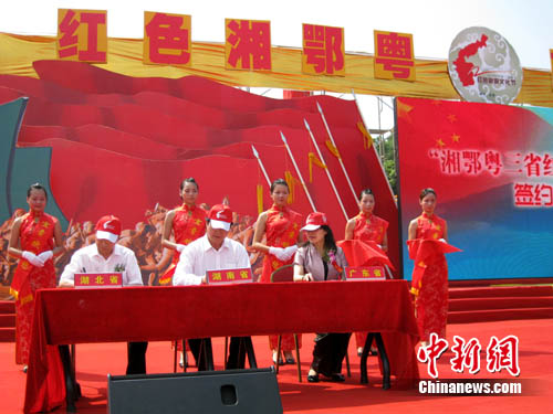 全國(guó)政協(xié)原副主席毛致用宣布2010年中國(guó)(湖南)紅色旅游文化節(jié)開幕式啟動(dòng)。在啟動(dòng)儀式上,湘鄂粵三省旅游局共同簽署《湘鄂粵三省紅色旅游聯(lián)盟》協(xié)議,緊扣“市場(chǎng)互推、線路互動(dòng)、游客互送”三大主題,借武廣高鐵為“媒”共同打造紅色旅游品牌。