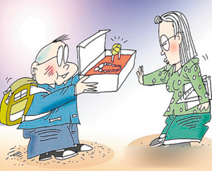 從本質上說,教師節送禮之風實為一種見不得陽光的交易之風。這場交易的主體是老師和家長,且二者都有一種急功近利的私心在作祟。家長希望通過送禮使老師能更多地關照自己的孩子,而老師則通過送禮的多寡來選擇對孩子所謂“照顧”的方式和大小。這樣做的結果,教師失去了應有的師者尊嚴,家長則陷入社會潛規則,二者交互作用,一步步助長了這種不良的社會風氣的滋生蔓延。