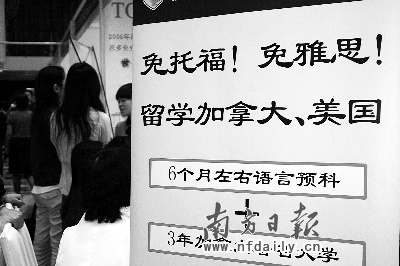 隨著高招的塵埃落定,越來越多的沒有錄取到理想學校的高考學生開始把出國留學當作最后一條退路。記者從幾家留學機構了解到,近期前來咨詢留學的高考落榜生尤其多,同比增加了三成多。據留學顧問反映,由于高考失利的挫敗感,缺乏對留學的前期計劃,很多高考失利學生在制定留學計劃方面有些盲目和草率,甚至有些病急亂投醫,因而成為一些非法機構的新目標。