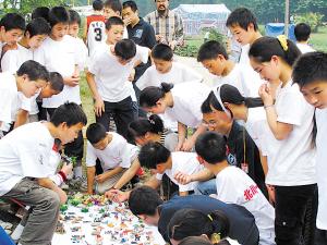 漂亮的別墅、美麗的天使、威武的坦克……各式各樣的小玩具被心理救援隊員們一字擺開!懊咳颂粢粋喜歡的,然后坐到沙盤邊來,聽我給你們講故事好不好?”復旦大學心理學教授申荷永招呼著。很快,每個沙盤邊就圍坐了七八個學生!澳銥槭裁匆x房子模型呢?”“我家的房子被震壞了,希望能有一幢堅固的房子……”心理援助就以這樣問答的方式展開。通過這樣挑選玩具后自由表達心聲的方法,能讓孩子逐漸擺脫對地震的恐懼感,大膽說出自己的想法和愿望。