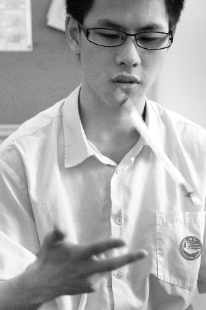 練習(xí)了半年,杰仔的技能已經(jīng)熟練,其中最拿手的“絕招”就是“飛筆”:兩只手一齊出動,兩支筆驀地騰起,劃了個360度的漂亮弧圈,掉下來時剛好被兩指夾住。杰仔常在教室里表演,引得同學(xué)們紛紛模仿,2007年下半年,他成立了筆舞社,吸引了20多名社員同樂。