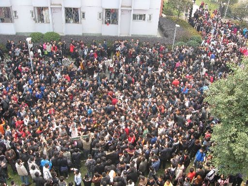 到今日中午,更有上千名“慕名”前來的校內外學生在女生所指定的樓下“圍觀”,等待著膽大的男生前來呼叫女主角,附近學校甚至有學生“組團”前往,并不斷有網友上網發帖報告事件進展。據網帖稱,稍后有一穿紅衣男子前來表白,將現場引向高潮。