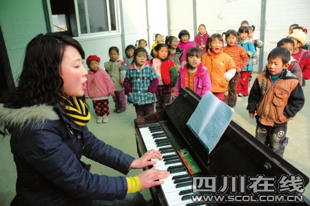 在綿陽市北川曲山鎮鄧家片區,有一位名叫彭麗的幼兒園女教師。去年“5·12”大地震發生后,在政府相關部門支持下,她主動辦起當地重建中恢復的惟一一所幼兒園照顧孩子們,讓家長們能夠全身心投入到災后重建中去。