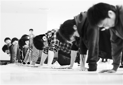 記者在第三組看到,考官用口令讓學(xué)生間隔兩秒完成一個動作,該組唯一的女生、數(shù)控技術(shù)專業(yè)學(xué)生王沖做到第10個時被喊停;一名男生做到15個時就支撐不住;做到20個時,考官稱“堅持不住的可以站起來”,當(dāng)場就有7名學(xué)生站起來,其他學(xué)生則堅持做完30個俯臥撐。