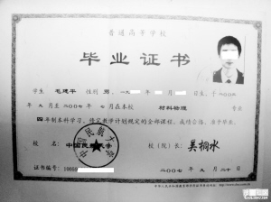 “一般情況下,學(xué)校頒發(fā)畢業(yè)證的時間是7月和9月。根據(jù)我們的了解,毛建平的畢業(yè)證應(yīng)該是在9月補發(fā)的。”朱向東說,之前,毛建平也與學(xué)校進行過多次接觸,并懷疑自己拿到的這份假學(xué)歷證書出自校方。但是,學(xué)校并沒有理由給一位學(xué)習(xí)四年并順利畢業(yè)取得畢業(yè)證、學(xué)位證的學(xué)生發(fā)一份偽造的證書。按朱向東所說,毛建平是2007年從學(xué)校順利畢業(yè)的,學(xué)校就會按照程序頒發(fā)給他畢業(yè)證書和學(xué)位證書,這是很正常的事。即使學(xué)校學(xué)工部在發(fā)證這一過程中出現(xiàn)丟失或者其他情況,再對他進行補辦也是很容易的事,根本沒有理由從學(xué)校發(fā)給他一份假學(xué)歷證書。