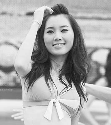 鐘茜劍藍(lán),很特別的名字,在眾多“比基尼”小姐中,讓人一下子記住了她。還因?yàn)椋藭r(shí)的她正就讀于廣州體育學(xué)院體育新聞與傳播系大三年級(jí)。