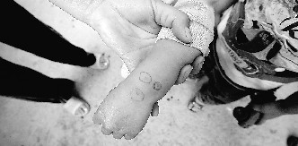 在幼兒園門口,聽說記者來采訪,不斷有家長帶著孩子圍攏過來。小謙的頭頂上被畫了幾個圈,他媽媽指著這些圈點告訴記者:“這個老師太狠心了,連頭上都亂打針!毙≈t的媽媽對記者說,他們是今年9月才把孩子送去這個幼兒園的,之前兒子一直好好的,但近段時間以來,只要他們每次送孩子上學,娃娃都會哭著喊著不去幼兒園,而且一提到老師就哭,直到有一天,她問小謙為什么不愿意去上學,兒子才說:“去學校老師就打針,我不去上學!