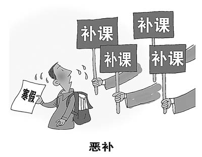 據(jù)《瀟湘晨報》1月20日報道,一名學生在網(wǎng)上發(fā)出“反補課倡議書”,號召全國學校成立“中國反補課學生聯(lián)盟”。網(wǎng)帖中,這名學生講述了自己在寒假補課時的心情:“補課的重壓下,神經(jīng)搖搖欲墜,做夢都夢到ABCD!