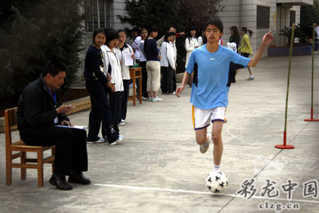 一位男生在足球帶球繞桿跑的考試中,發揮失常,僅得了7分,難過得流下眼淚。因為按他平時的情況,拿滿分不是問題。