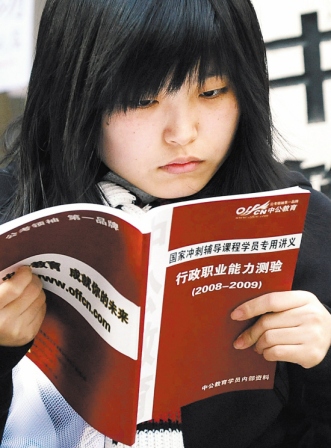 高等教育大眾化時代,公務(wù)員考試成了百萬雄師爭過的新“獨木橋”。2009國家公務(wù)員考試已落幕,人們不僅念叨77萬多人趕考1萬多個崗位的盛況,也關(guān)心這場考試的命題思路,對接下來的省公務(wù)員考試會有哪些導(dǎo)向作用。因為在很多大學(xué)生眼里,“國公”就像練兵場,真正的戰(zhàn)場在省公務(wù)員考試。