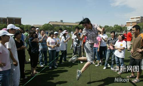這是今天發(fā)生在南開(kāi)大學(xué)首屆學(xué)生心理運(yùn)動(dòng)會(huì)上的一幕。以“情系災(zāi)區(qū),溫暖校園”為主題的學(xué)生心理運(yùn)動(dòng)會(huì),面向全校學(xué)生,希望通過(guò)團(tuán)體性身心活動(dòng),讓同學(xué)們放松身心,緩解壓力,熔煉團(tuán)隊(duì)精神,以?shī)^發(fā)向上的精神狀態(tài)投入今后的學(xué)習(xí)生活。