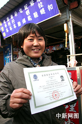 中新網寧波12月15日電(何蔣勇 陳未鳴 李孟龍)一位41歲的普通修鞋婦女,為了義無反顧地追尋自己心中的“夢想”,竟然憑借過人的毅力堅持孜孜不倦地自學英語20多年。“我終于通過全國英語等級考試,拿到了全國英語三級證書了。”昨天一見到記者,這位普通家庭婦女抑制不住內心的激動心情。
