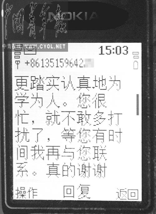 周澤告訴筆者,他在2005年就發(fā)現(xiàn)了此事,并給廈門大學(xué)發(fā)去了傳真進(jìn)行維權(quán)。他還與周立華碩士階段的導(dǎo)師取得了聯(lián)系,被告知當(dāng)時周立華正在攻讀博士學(xué)位,是節(jié)選了其碩士論文的部分內(nèi)容單獨(dú)成文后給雜志社投的稿。導(dǎo)師還代他的學(xué)生向周澤求情,說這個學(xué)生很不容易。2005年6月 21日晚,周澤先后收到了周立華的兩條短信,就文章抄襲之事向他表示歉意。其中一條短信寫道:“周老師,真的對不起!謝謝您給了我改過上進(jìn)的機(jī)會,也謝謝您給我上了深刻的一課!以后我會更踏實(shí)認(rèn)真地為學(xué)為人。”但此后周立華再未與周澤聯(lián)系,周澤也暫時擱下了此事。