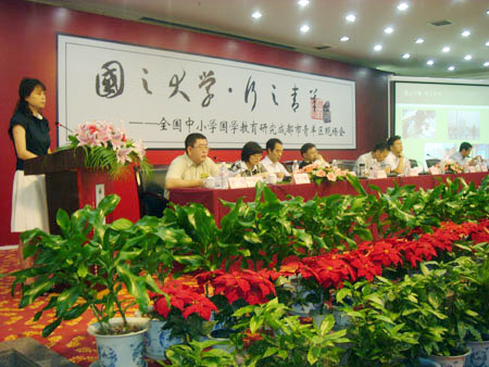 7月8日,全國(guó)中小學(xué)國(guó)學(xué)教育研究成都市青羊區(qū)現(xiàn)場(chǎng)會(huì)在蓉召開,來自北京、青島、重慶等地的上百名專家代表就國(guó)學(xué)教育在中小學(xué)校園內(nèi)的開展進(jìn)行了交流討論。據(jù)中國(guó)教育部語言文字應(yīng)用管理司司長(zhǎng)王登峰透露,有關(guān)部門準(zhǔn)備邀請(qǐng)歌星演唱經(jīng)典詩(shī)詞,以契合中小學(xué)生的年齡特點(diǎn)和心理需求。