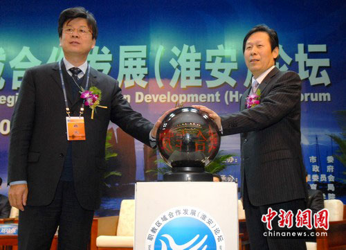 論壇上,江蘇省經(jīng)濟(jì)與信息化委員會(huì)副主任陳為保和淮安市市長(zhǎng)高雪坤共同為產(chǎn)學(xué)研合作互動(dòng)平臺(tái)——江蘇省經(jīng)濟(jì)與信息化委員會(huì)培訓(xùn)基地、淮安市產(chǎn)學(xué)研協(xié)會(huì)揭牌。
