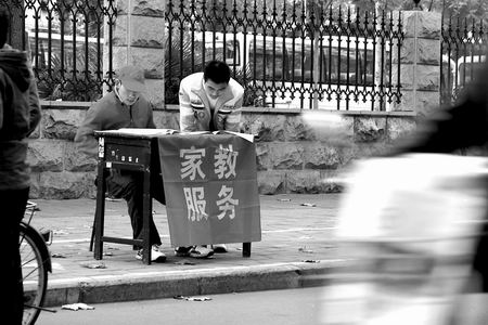 “暑假前半個(gè)月,招工廣告就遍布校園。南方的加工企業(yè)和保安公司的居多,所以,想暑假掙些錢(qián)又不想呆在學(xué)校的同學(xué)報(bào)名踴躍。而不想離開(kāi)學(xué)校的同學(xué)有的做家教,還有一些有經(jīng)驗(yàn)的高年級(jí)學(xué)生辦起了暑假輔導(dǎo)班,用自己大學(xué)生的知識(shí)優(yōu)勢(shì)輔導(dǎo)中小學(xué)生。但更多的同學(xué)是通過(guò)街頭小廣告或勞動(dòng)力資源市場(chǎng)尋找適合自己的工作崗位。”扈孟德說(shuō),暑假期間,學(xué)校因?yàn)橛姓猩裙ぷ鳎矔?huì)提供一些打工崗位,但數(shù)量非常有限,大學(xué)生打工的整體情況很難把握。