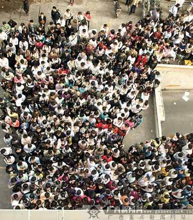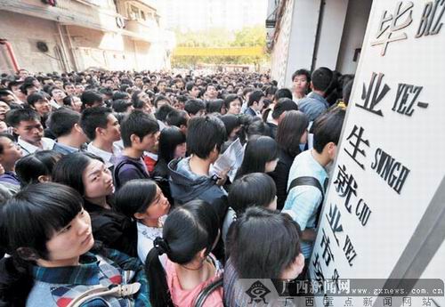 2月11日,廣西師范學院畢業生小陳特地起了個大早,趕在8時30分來到南寧市人才市場,參加當天舉行的春季高校畢業生專場招聘會。令小陳吃驚的是,人才市場入口處已有兩三百名畢業生在等候,原打算提前占據“有利地形”的他,只能排在離入口約20米遠的空地。