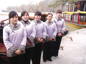 談到兩人大學所學專業,唐紅梅介紹說自己去年畢業于蘇州經貿學院紡織貿易專業,小崔非常風趣地說:“學這個專業應該做經貿部長!卑熏F場觀眾逗得哈哈大笑。錢悅介紹,自己是揚州職業大學商務日語的應屆畢業生。“你應該去中國駐日本大使館做專員!毙〈薜囊环暗箅y”把兩位船娘逗得既害羞又開心。