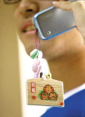 中學(xué)生將“可愛型”安全套掛在手機邊四處走。