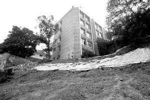 昨日,記者在雞冠石學校看到,學校的綜合樓目前尚無危險。小學部教學樓和學生寢室外拉著警戒線,樓后便是滑坡地。據(jù)余校長稱,小學部教學樓有可能通過修復排險“搶救”回來,而中學部教學樓正在進行拆除。
