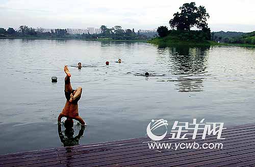 一位剛從水里鉆出來的學(xué)生證實(shí)了上述推斷:“不少市民傍晚會專門開車來這里游泳,周末岸邊都停滿了外面來的小車。”他說,學(xué)校的游泳池開放時(shí)間有限制,而且要收費(fèi),自認(rèn)為“水性好”的同學(xué)都樂意到中心湖游泳,“只要不下雨,這里的‘人氣’都很旺”。