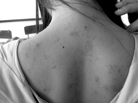 剛開學(xué)不久,四川省弘博中等專業(yè)學(xué)校新生羅珊只是身上少數(shù)部位出現(xiàn)了紅疙瘩,她以為是被蚊子叮咬也就沒放在心上。可隔了幾天寢室里的8名同學(xué)都陸續(xù)長滿了“紅包包”,大家才開始著急起來。“特別是襠部、腿部等隱秘部位,一出汗又痛又癢,又不方便撓。”女生小劉有些不好意思地說。記者見到女孩背部紅了一片,癥狀較輕的脖子竟已經(jīng)被撓壞。因為學(xué)校為封閉式管理,學(xué)生們并沒有到醫(yī)院醫(yī)治,只到衛(wèi)生站診治了一下或僅是簡單地涂了些外用藥。