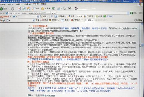 11月17日,一篇“西北工業(yè)大學(xué)學(xué)位辦主任扶××瘋狂剽竊他人論文”的帖子出現(xiàn)在西安一家網(wǎng)站論壇上。發(fā)帖者“西工大研究生”在帖子里稱,扶××系西北工業(yè)大學(xué)研究生院學(xué)位辦公室主任,2006年12月獲工學(xué)博士學(xué)位,其博士論文題目是“高速公路規(guī)劃的系統(tǒng)工程方法研究”,這篇文章剽竊了西北工業(yè)大學(xué)周俊超的碩士學(xué)位論文“高速公路規(guī)劃方法研究及應(yīng)用”。帖子里還列出表格,詳細(xì)對(duì)比了兩篇論文的剽竊頁碼,該網(wǎng)友認(rèn)為,扶××論文的1至5、8至20、25至32、35至44、56、67至77、79、120至121共計(jì)51頁,涉嫌剽竊周俊超碩士論文的1至6、8至52、54至55、64至67、72頁,共計(jì)58頁。