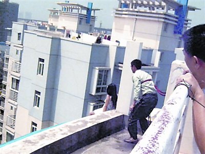 當(dāng)小女孩看見(jiàn)警察跑上樓頂,立即走到12樓住戶的雨陽(yáng)棚上,哭喊著說(shuō):“不要過(guò)來(lái)。”現(xiàn)場(chǎng)氣氛再次緊張起來(lái)。該所民警見(jiàn)狀,一邊后退,一邊安慰小女孩。分局副局長(zhǎng)張?jiān)号c刑偵大隊(duì)長(zhǎng)、辦公室、巡邏大隊(duì)、消防中隊(duì)、工人村派出所等負(fù)責(zé)人趕到現(xiàn)場(chǎng),在另一棟樓樓頂成立現(xiàn)場(chǎng)指揮部。查看現(xiàn)場(chǎng)后,張?jiān)褐甘荆襞c女孩“ 談判”解救無(wú)果,則強(qiáng)行救援。