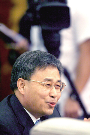 郭樹清代表在十七大分組討論會(huì)上發(fā)言。(圖片來源:京華時(shí)報(bào) 張斌/攝)