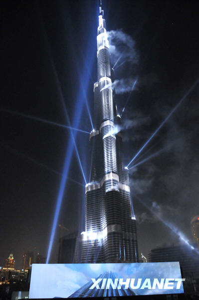 據美國媒體5日報道,在炫目的煙花和觀眾的歡呼聲中,迪拜1月4日向世人揭開了世界第一高樓的面紗,宣布這棟舉世無雙的“擎天柱”高828米。