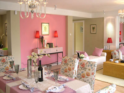粉紅色,最善于傳達年輕、浪漫的感情,在粉紅色的主色調下,可搭配純凈清透的白色或透明色,米白色與淡藍色都能烘托出粉色羅曼蒂克的格調?蛷d里的小擺設,可愛的抱枕,精巧的臺燈,都能體現主人的生活情趣。