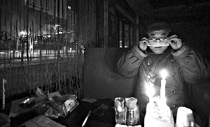 由于停水停電無暖氣,陸大任只能去附近居民家借水,并用爐子燒蜂窩煤取暖。前日,蜂窩煤爐也被相關管理部門收走。陸大任現在24小時在店里,天冷,他就穿上厚厚的軍大衣和棉褲。
