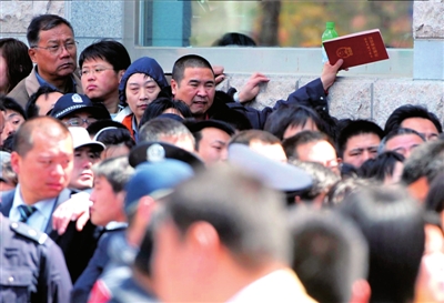 中午時,排隊的人數達到了數千人。看到前面還有幾百人,楊老先生很失望,“這隊得排到明天去,3個小時才往前挪了10米”。他說,他和家人是看了有關加強經適房管理的通知的新聞后才來的,“轉成商品房后就沒有那么多限制了,想租想賣都成。而且怕政策收緊,萬一以后改要繳納更多的稅費呢”。