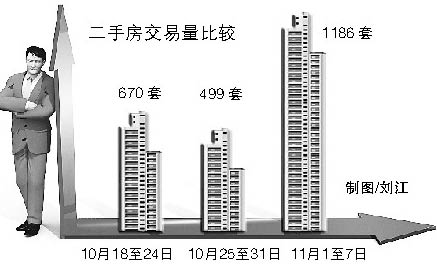 來自房地產(chǎn)交易管理網(wǎng)的數(shù)據(jù)顯示,上周,北京二手房住宅成交量為1186套,比10月第四周上漲137%,比10月第三周上漲77%。